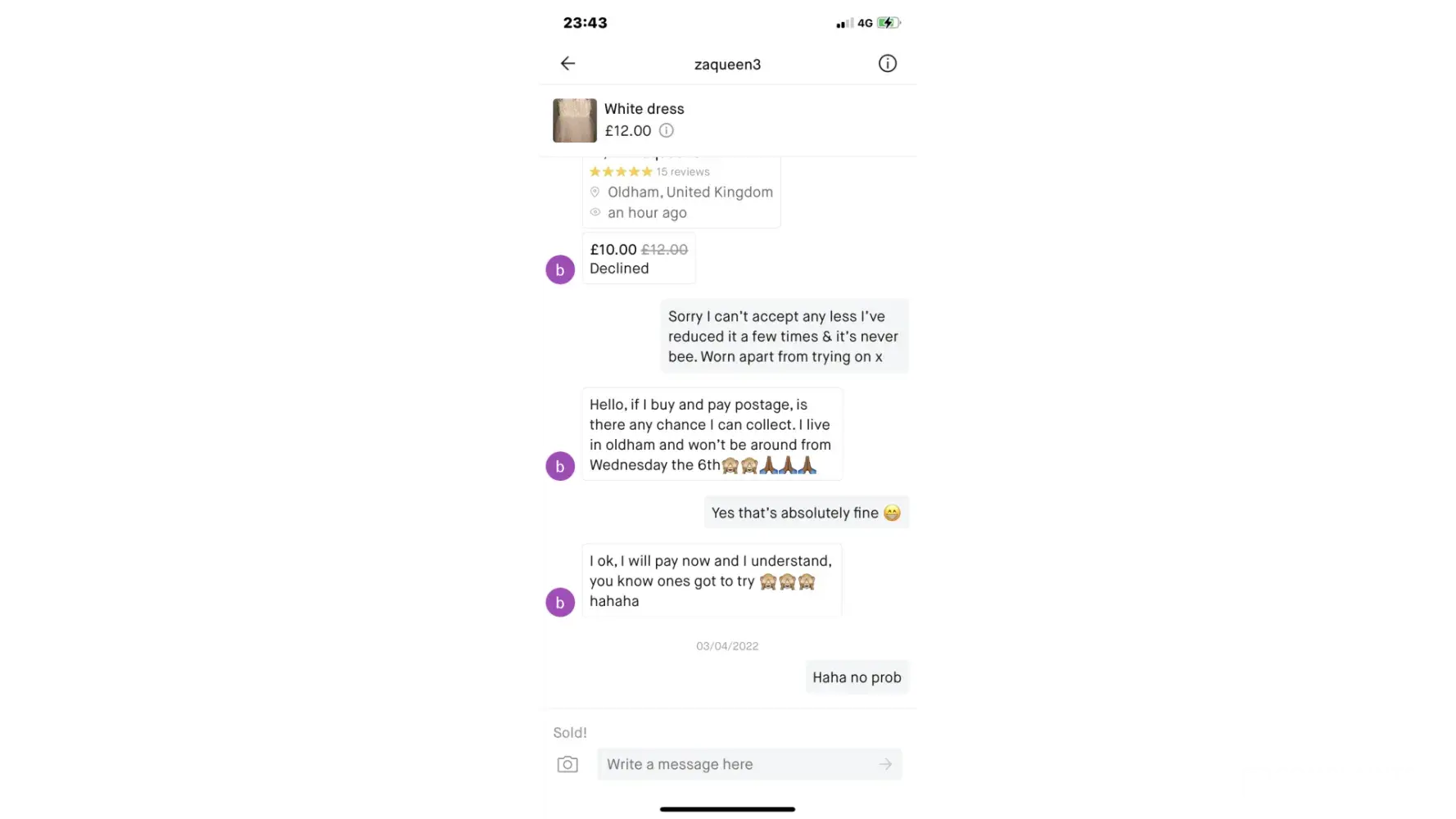 Please see photos attached of the conversation and myself from the buyer. It shows proof she collected the dress and was really happy with it.