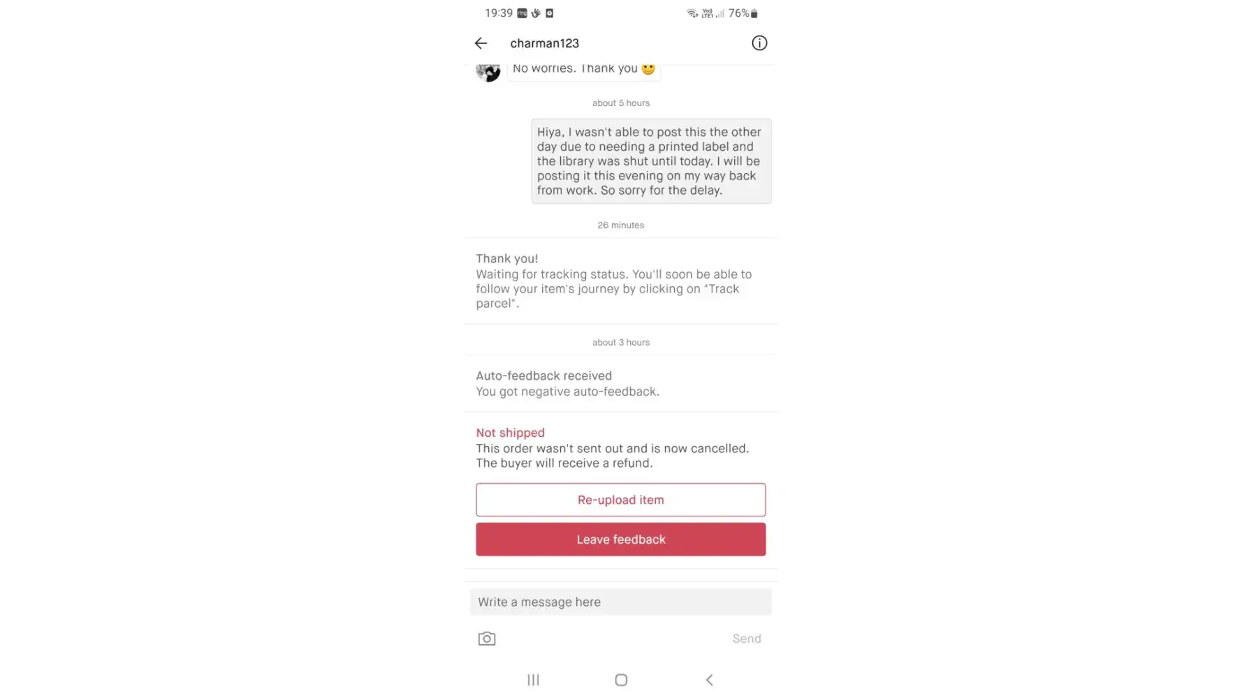 I sold an item on vinted and posted it, unfortunately it was on the last day available to post and despite posting successfully the status of the sale was updated to 'Cancelled'. I contacted Vinted with proof of postage but they said they wouldn't help as I needed the original buyer to buy it again. The item has been dispatched and I have proof of postage, correct address and the courier company has acknowledged receipt of the item but Vinted have said they won't help or revert the status of the sale back to completed.