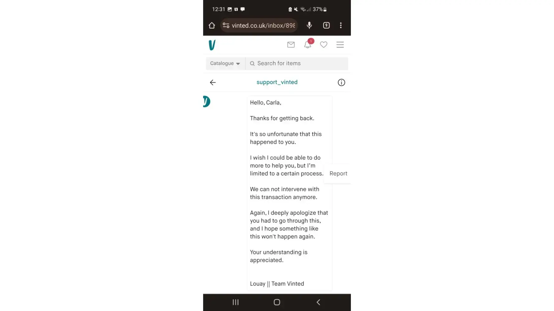 I have given Vinted a 24-hour ultimatum to provide a resolution. Unfortunately, to date, I have not received any satisfactory response or action from them. This lack of response only reinforces my belief in the urgency and gravity of this matter.