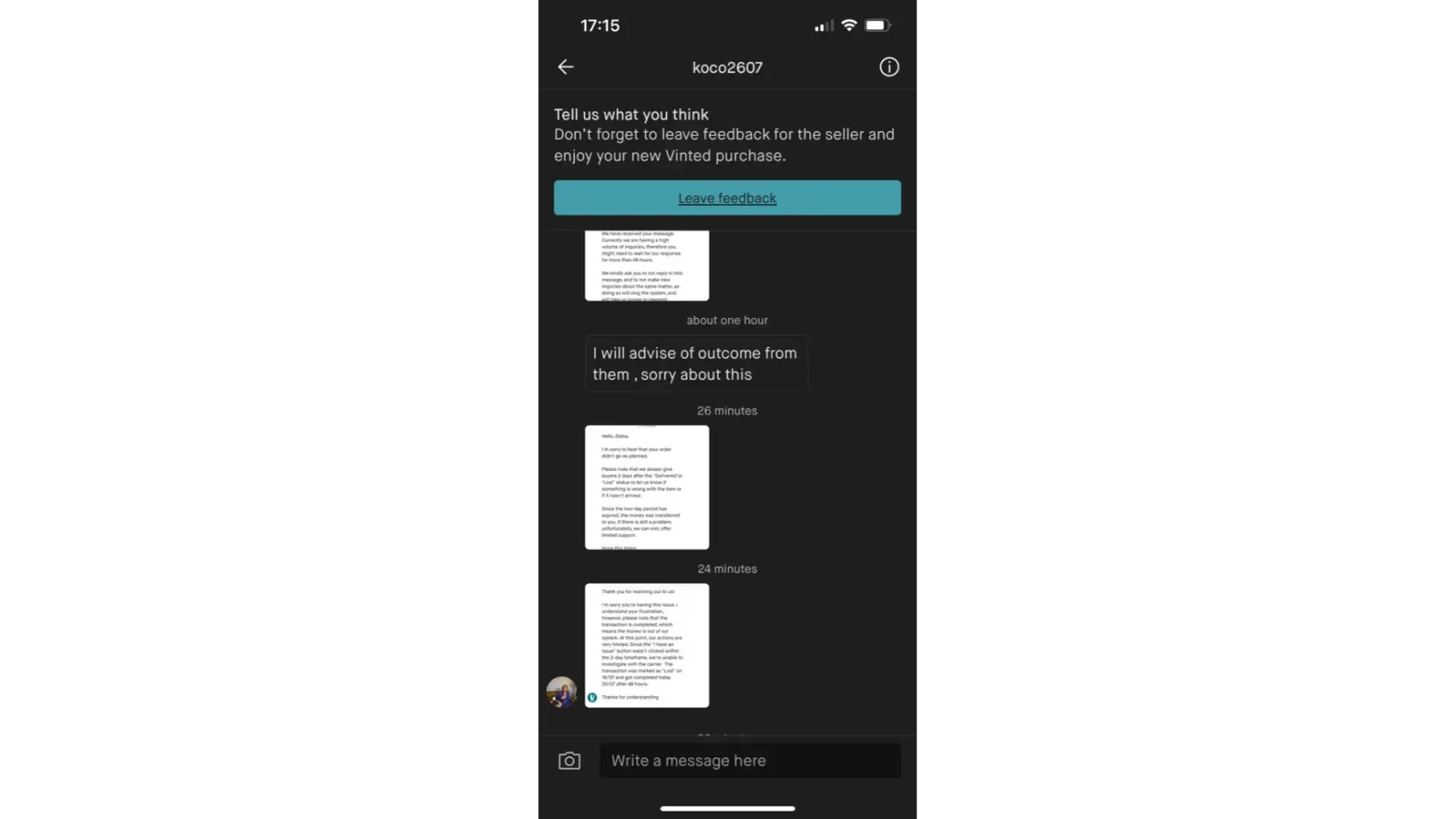 I filed a dispute on the 24th, and provided the email from Inpost. on the 25th and 26th, to many different Vinted team players, including Mahdi and yet the individual named messages seemingly have gone missing, and only the automated messages are left, why is that? All computer data can be traced.