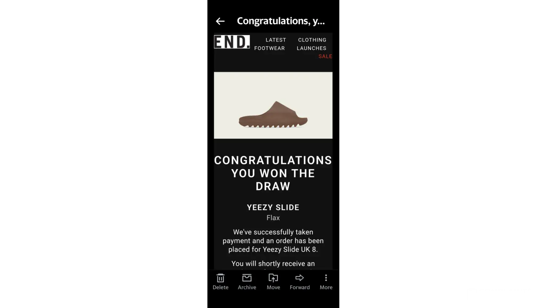 I logged on the next day to see if there had been any views only to find that my account had been definitively blocked and I had been accused of selling counterfeit goods. I was shocked and very upset to have been accused of this without any attempt to get any further information from me. I replied to this message, sending screen shots of the emails showing me winning the raffle to purchase the items as well as a copy of the order email itself to show proof of legitimate purchase. Your team then contacted me asking me to send a photo of the inner size label placed inside of the Yeezy slide or on the shoes soles / insoles. If anyone replying knew anything about Yeezy slides they would know that such things do not exist. There are no labels inside them as they are waterproof items and therefore are a solid piece of rubber. I had already provided pictures of the soles of the slides in my original listing. The only thing included inside the slide is an imprint stating "Yeezy, Made in China, [protected]@US (I have attempted to take a picture of this but it is almost impossible as a phone wont fit in to the slider).