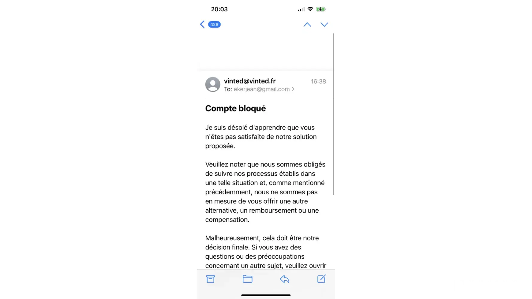 I bought a t-shirt on Vinted which didn't fit me. I relisted it the following day only to be blocked and told that the item was fake. They terminated my account and said I had violated their rules.
