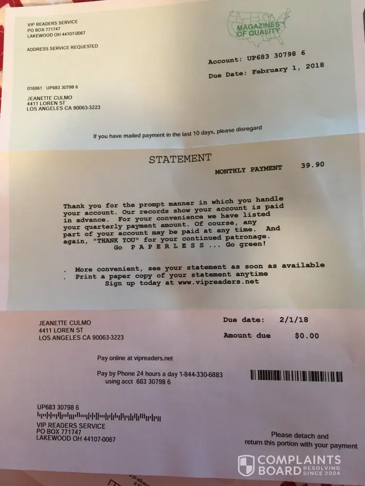 Read full complaint and 52 commentsOverview of VIP Readers Service complaint handling