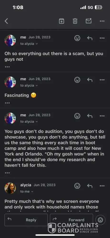 They say they don't table troll like other talent scams in malls, when in reality its because if they could, they would. The problem is, they'd be under investigation so fast they'd be shut down AGAIN. Alycia thinks she's cute because she talked to some guy she met on Craigslist about "being in the industry" and then they have the audacity to boast about how hard it is to be BACKGROUND in a film. What a joke.