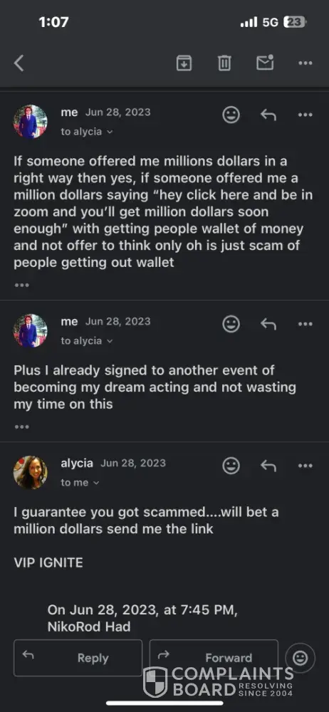 They definitely ARE a scam and anyone on here refuting that is part of the company and acting undercover. I had that very same experience and I've talked to many others who have as well, not to mention the plethora of online complaints that discuss these same experiences and have reported this company to the Federal Better Business Bureau for their suspicious activity.