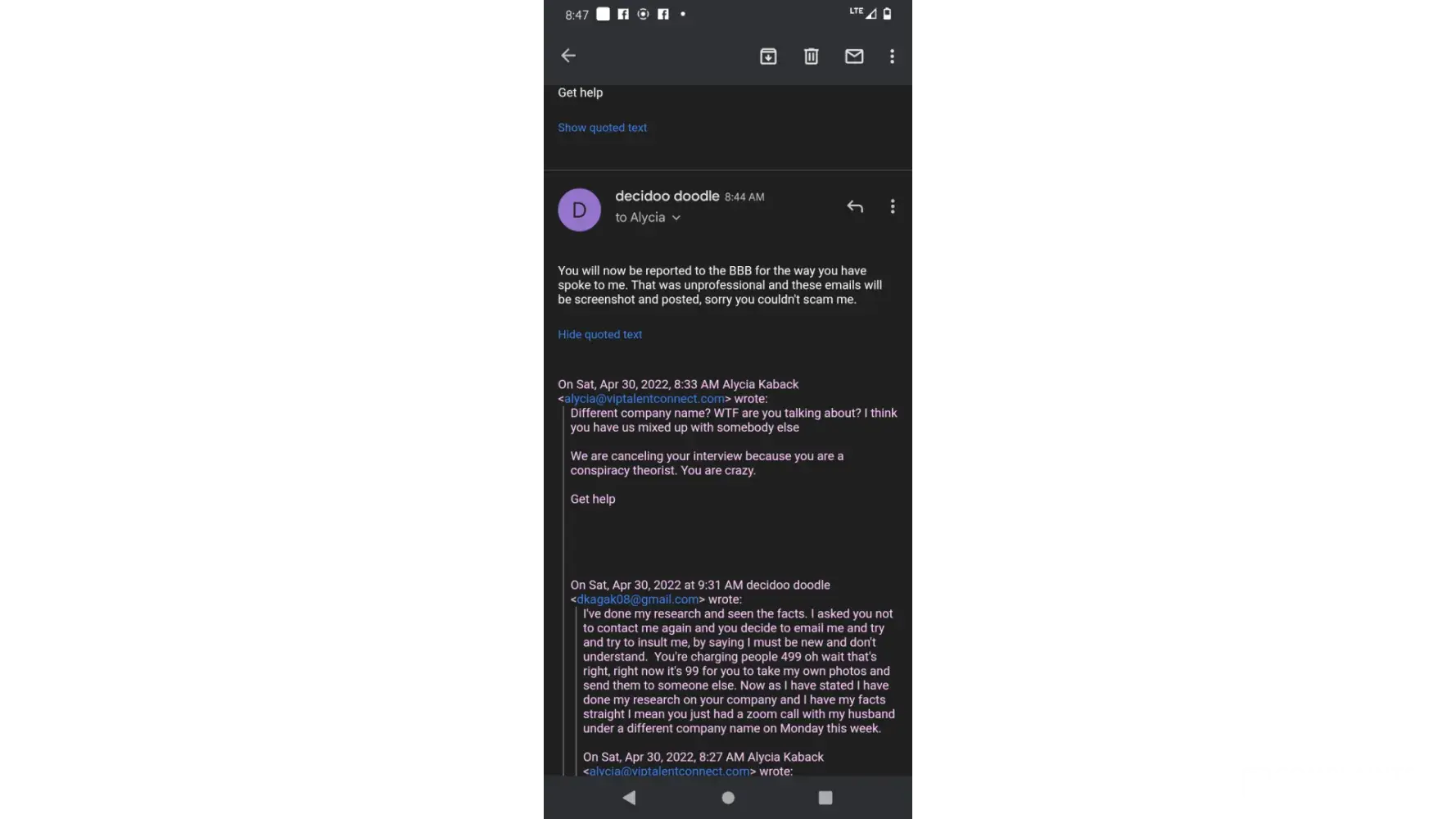She then proceeded to insult me and tell me I was too inexperienced to join her scam company.