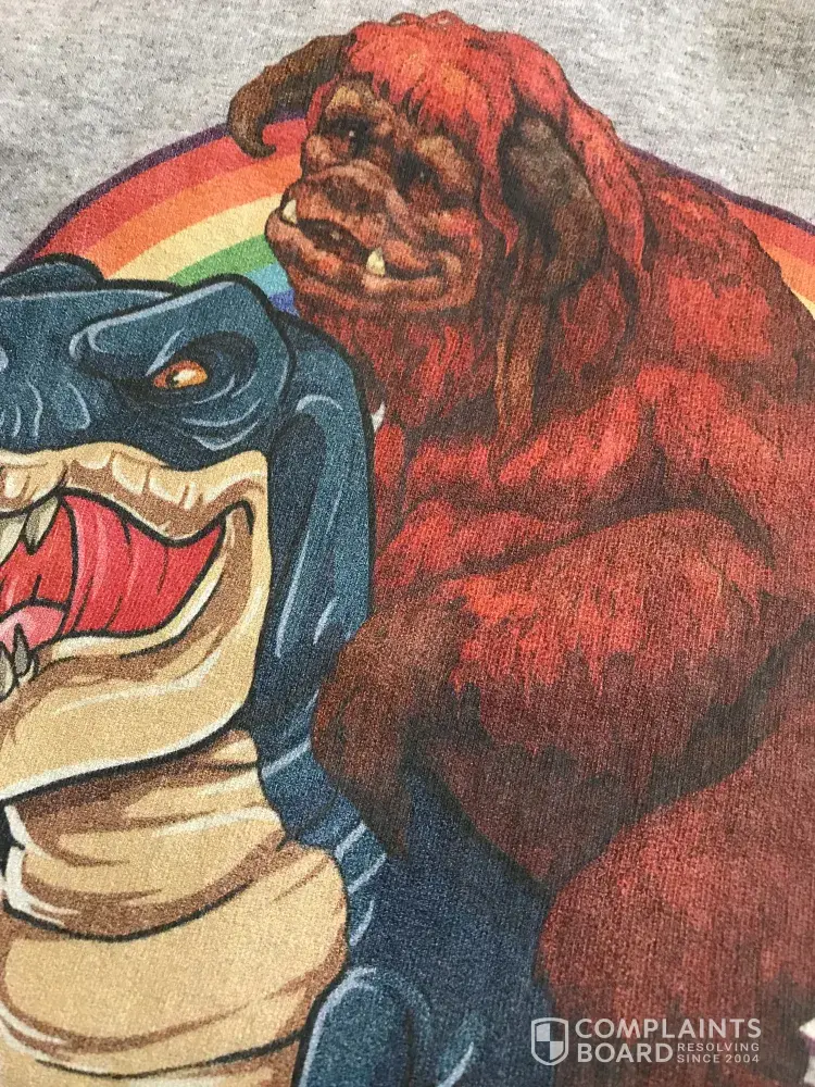 Do not buy I bought a labyrinth t-shirt with ludo riding a dinosaur the shirt looks nothing like the photos at all it's a lines through all the design little so dark he doesn't even have a good detail the shirt is crap one of the cheap cotton shirts and the customer service is he a worst it's a scam. On top of that they want me to pay to return the items and lose out on the return shipping. I paid over $30 for this crap