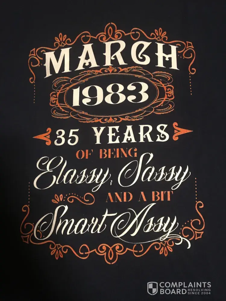 I ordered a tshirt through viralstyle. It said "march 1983 35 years of being"elassy, sassy and a bit smart assy". I asked them if I could return it as it supposed to say classy. Apparently that's what it was supposed to say all along. Bs company! Don't waste your time or money! With all of the bad reviews I can't believe they are still in business!