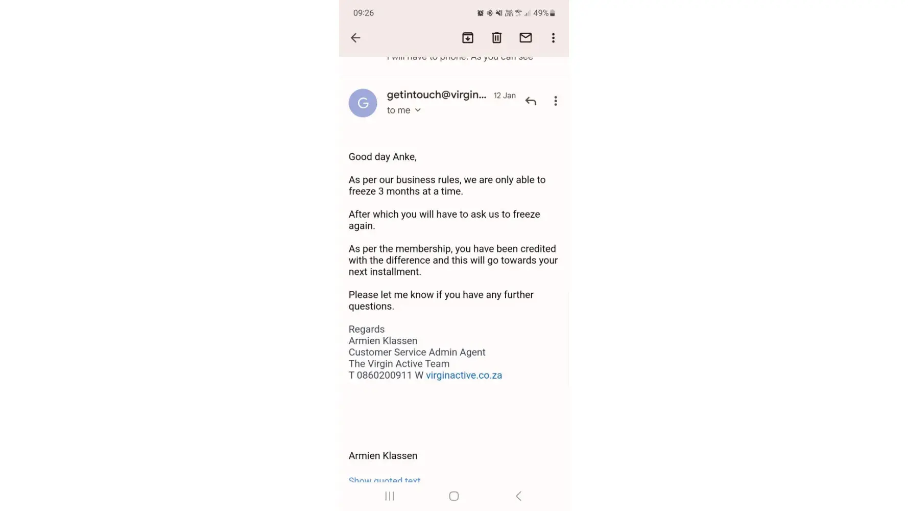 Good day complaining of unlawful and fraud that virgin active is doing to us I have Payed full 3 month money but I haven't used the gym because of I was working far away from my home town.