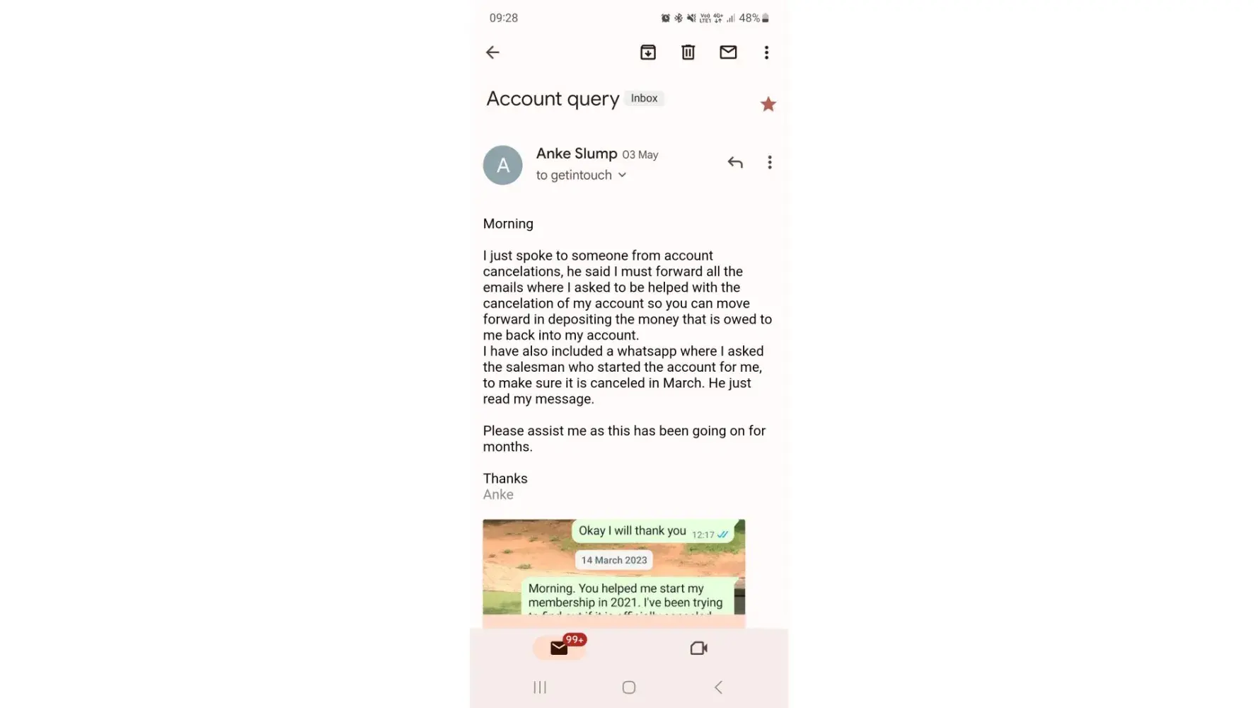 I messaged my sales rep in Windhoek and he gave me an email address, I also informed him that I end my membership as stated.