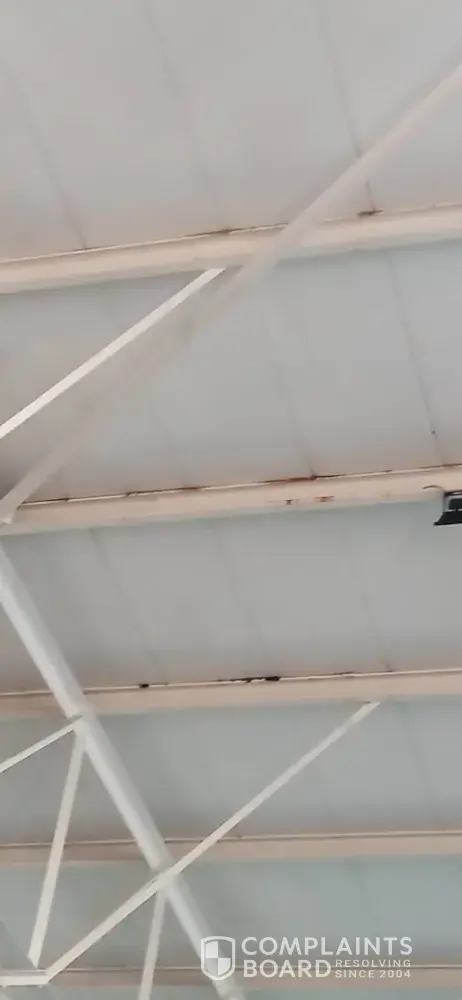 I reported that the roof is leaking and because of no circulation at night condensation is formed under the roof and rusting occurs. The condensation drips on the people while training.