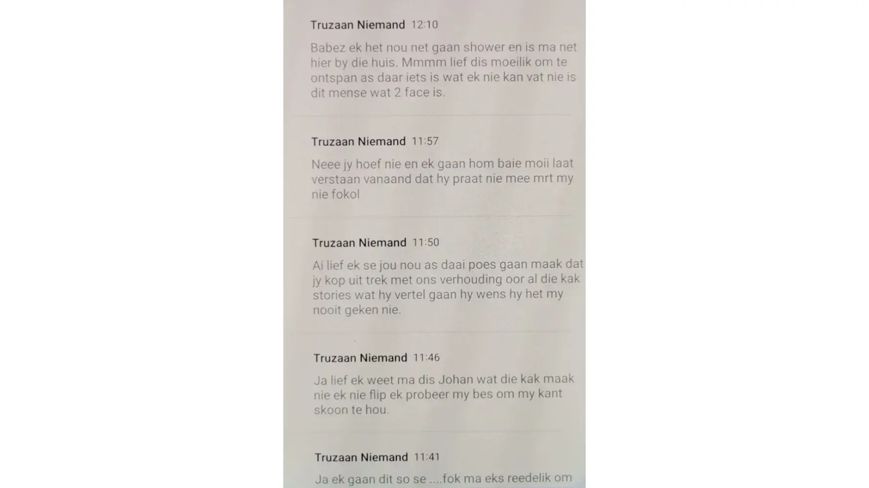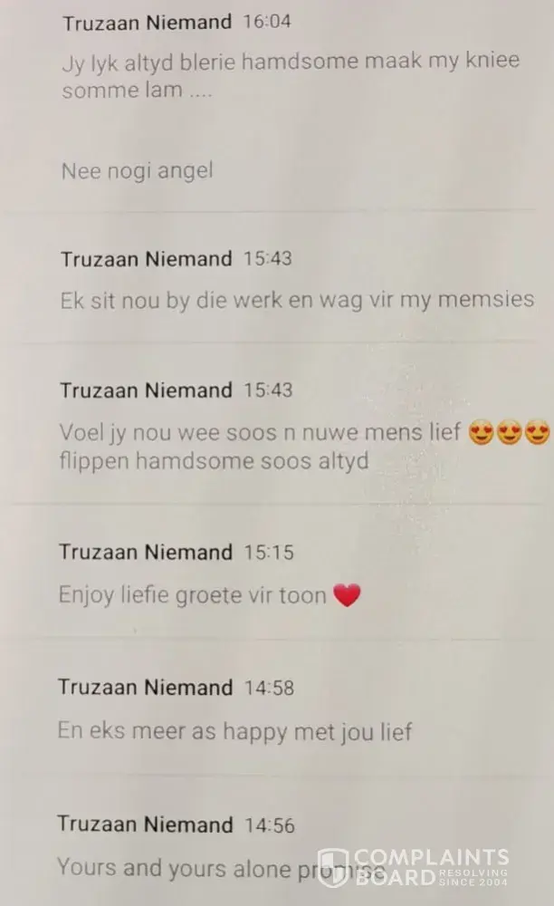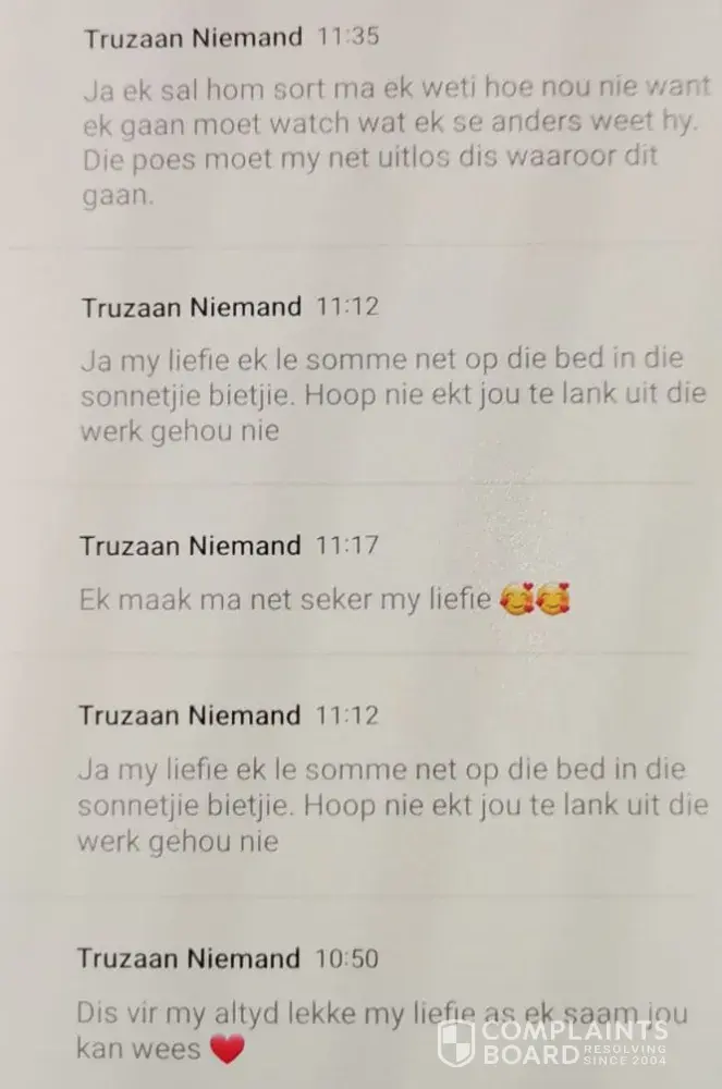 In the meantime, we continue phoning Emanuel, and he keeps promising it is rectified and will send us the proof. He never kept to his promise, and so the game continued. I send him SMS, and he makes promises.