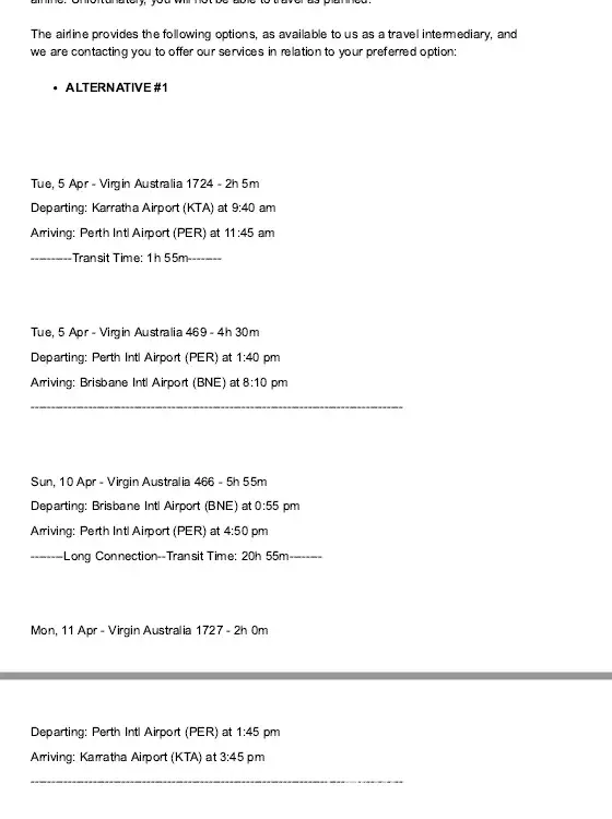 But, I just want you to know that someone was misrepresenting themselves as Virgin Australia.