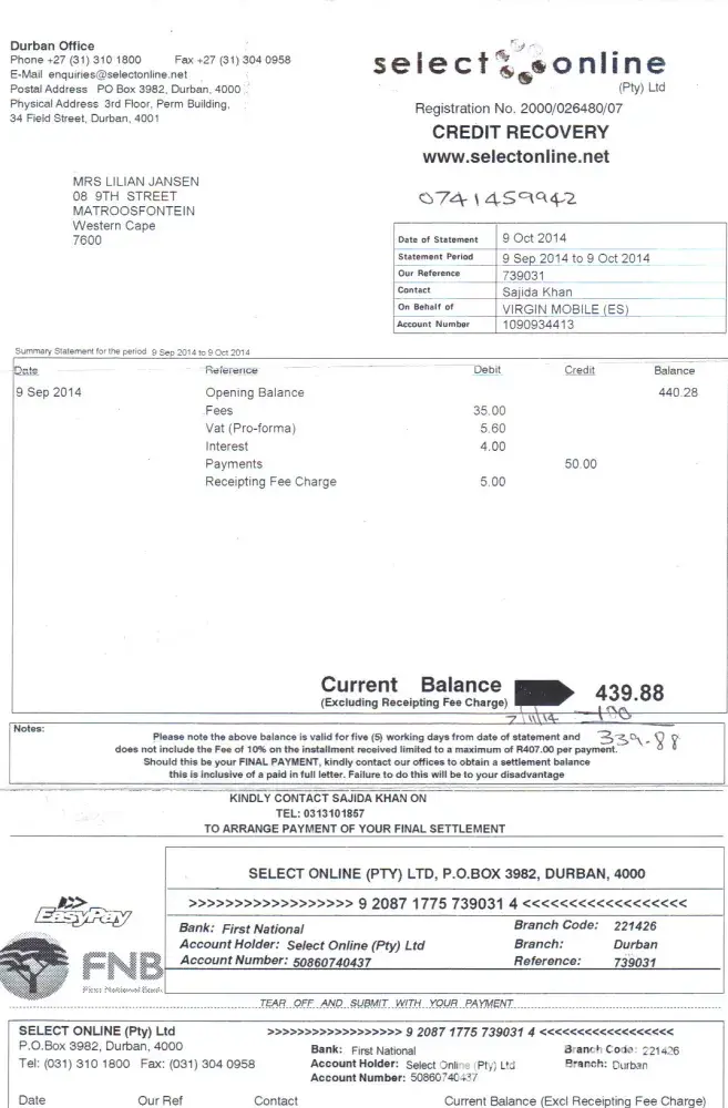 i do cash payment on my contract because the company debited my acount wrong now more than a year later im still having problems they sms me every month and cut my phone due to non payment i have faxed and emailed all payments to them but still no change i have spoken to a manager Elize but still nothing why must i have this problem every month formore than a year iwant this resolved and i will never renew my contract with virgin moble again