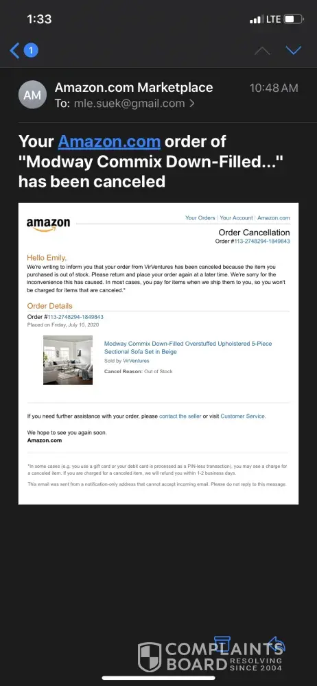 Sectional couch they canceled my order to increase the price!