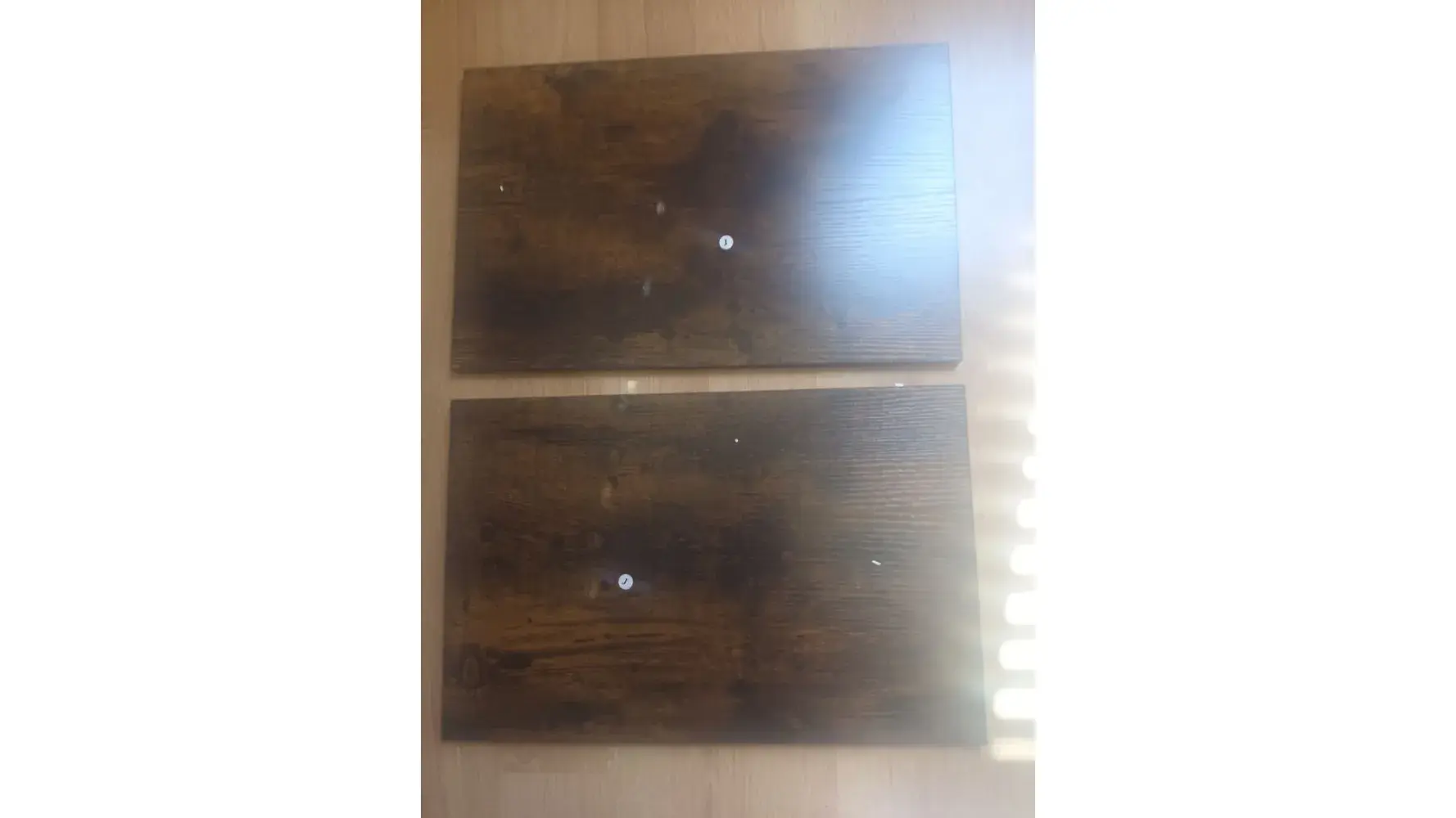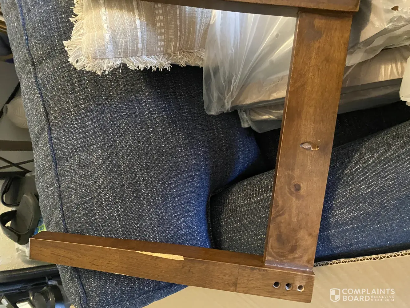The Chairs are clearly a return. There is small damage nicks and dents, The big damage is on the legs a rather big sliver / chunk is missing. I'm very disappointed that it was sent this way. I hope we can get this resolved as quickly as possible.