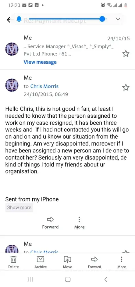 Firstly, visassimply charged me a significant amount of money for their services, which I paid upfront(1500AUD). They promised to provide a detailed explanation of the visa application process and to assist me with all the necessary documentation, which they did not fulfill.