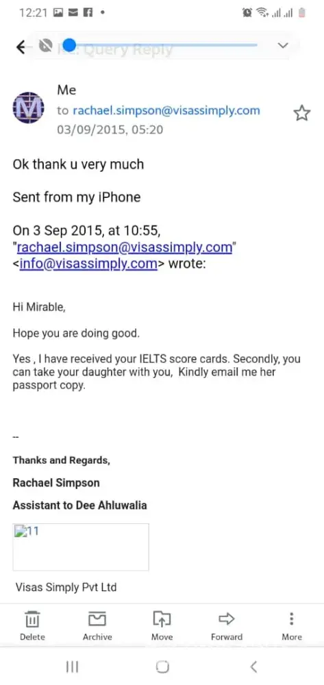 Hello, I am Sandeep P, client of Visassimply. I am writing to complain about the services offered to me by the company. I am completely dissatisfied by the company and below I have mentioned a detailed account of my grievance. 1. Failed to explain the process (Name and details of who spoke to you initially) 2. Failed in giving professional guidance (wife primary and ACS code) 3. Failed in performing duties (doc review, communication, resolution of issues) Details of your engagement with Visassimply: Name: Sandeep P Education: Btech EEE Experience: 7 years Service details: Information technology Payment of fees: Credit Card Case Manager (name, date): Diana Cooper 09 Jan/ Navneet kaur 21-March Assessment details : Anzco code: Initial 261111 later 262113 Date of application: March 15 ACS Results: June Firstly, the process for obtaining PR was not explained clearly by Diana Cooper. Inspite of informing my complete profile, I was not guided properly as my wife, who has a computer science background and experience in IT, would have been an ideal candidate for application with me as add-on. This move would have saved us crucial time as well as filling up of the RPL was very time consuming. Shockingly my case manager at the time of filling my assessment wth ACS Ms Navneet Kaur did not review my documents. When I realized that there were multiple people involved, with no one having a complete idea of what was happening with my case. I tried to get a complete picture through a conference call (Diana, Navneet, Neeraj, and me in May'13) but that clearly showed how unorganized Visasimply functions as the employees started blaming each other in call for not reviewing the documents before filling for assessment. The only solution offered to me was to be patient until the ACS completes its assessment. I was asked to file under the Business Analyst (with an annual quota of 1800) category but ACS replied back that my qualification and experience is more suited towards System Administrator (with an annual quota of 2400). This clearly shows that Visassimply failed in rendering their services. Even the simple thing like interpreting the result from ACS was done incorrectly by Ms Navneet Kaur (Date- June 13, mode of communication - Email) as she told me that ACS assessed me to be experienced for 7 years instead of the actual assessment of only 2.7 years. I have been trying to contact Mr Neeraj (tried calling him more than 10 times since a week to find out about my case and future plan but didn't get any response. Not knowing what to do I reached out to Daniel on July 1st as a final resort as well. Today, I have received an email from Neeraj that i have to wait till September with no fault on my end. Also the email was so blunt as never expected. As Visasimply is a MARA registered agency, I have place complete trust in its counsel and guidance for my Australian visa processing but they have completed betrayed my trust and failed in performing the basic duties and according to the return policy of the company I am entitled to full refund of my processing fees of Rs. 80, 000/- or so I urge the company to immediately give me a full refund of the processing fee of Rs. 80, 000/-, Failing which I will be left with no other alternative but to file an official complaint with MARA.