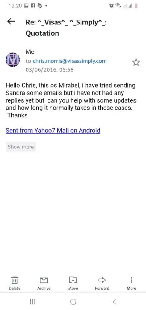 Lastly, visassimply stopped responding to my emails and phone calls, leaving me in a state of anxiety and confusion about the status of my application. When I finally received a response, they gave me inaccurate information, which further exacerbated the situation.