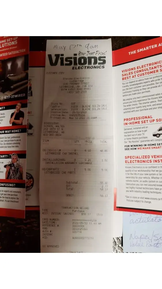 I purchased products from the red deer store I had them install it. Discovered my subs stopped working so I looked into and the amp they glued onto the back wall of truck was no longer glued up. It was sitting on the cords on the floor and obviously for some time as the rca ports on the amp are not working now. I took to place of I stall and the installer...