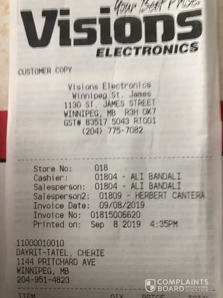 I purchased an $1100 Samsung TV on January 7,2025. When we plugged it in at home the screen showed only vertical lines. I returned it to Visions store in Langford BC and the manager Brandon Bauer refused to refund or replace the defective TV! Do not do business with this rogue company!