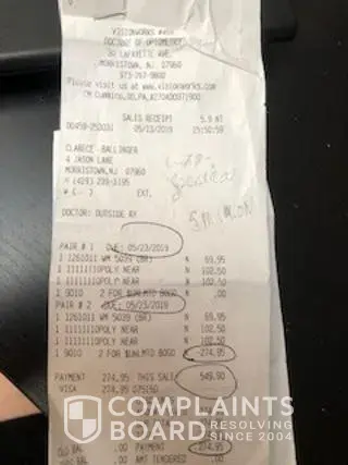To whom it may concern! I visited the store and paid 669 dollars, I ordered a computer pair, by mistake they did it as a near pair and they promised to replace it. I found myself obliged to buy another deal of plastic lenses 2 pairs 59 dollars they made it wrong presecription and here my journey starts between visionworks and my doctor. On April 23rd I...