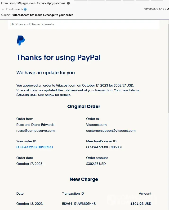 Vitacost did respond with a fair and equitable price adjustment. Thank you.
