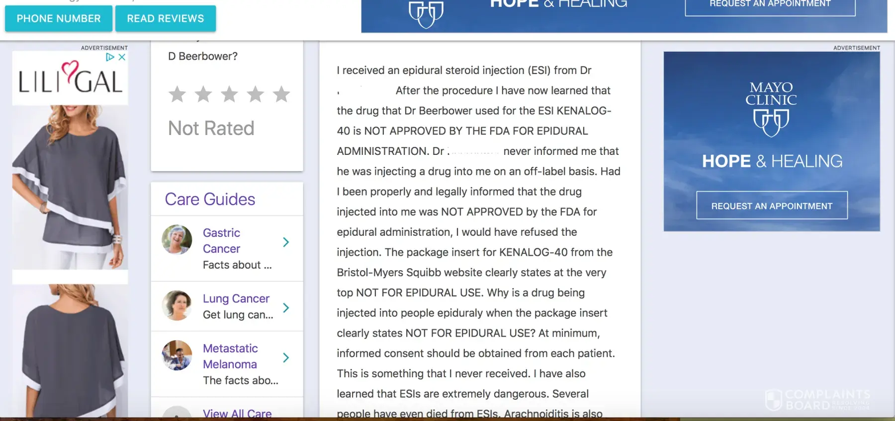 We called Vitals 3 times and despite the promises by the same female representative" to review our complaints and remove unfair "review" nothing was done during the last 6 months. The same former patient posted one more identical to his first one, "review" a month ago.