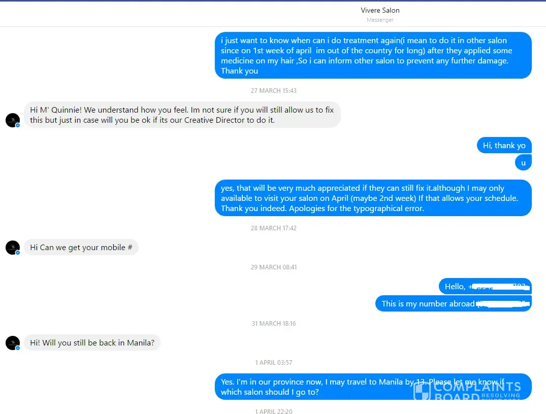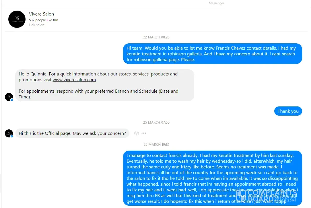 Read full complaint and 18 commentsOverview of Vivere Salon complaint handling