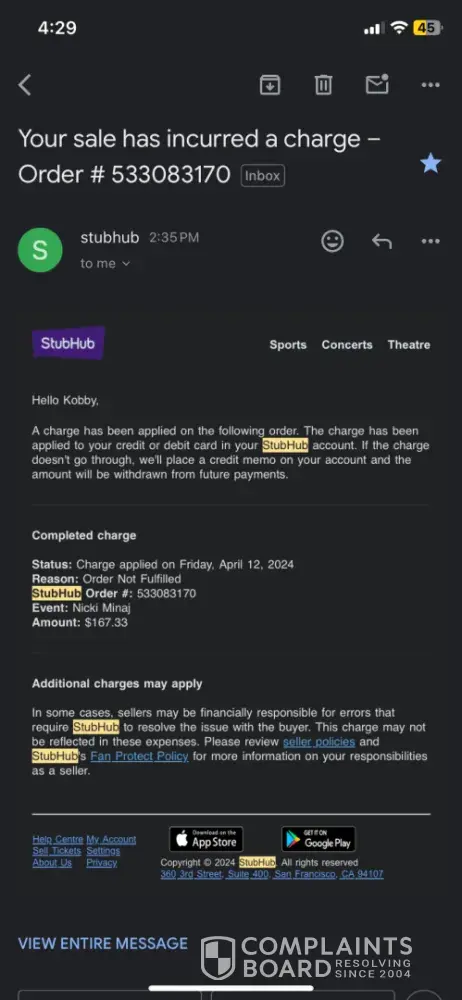 Read full complaint and 1 commentOn September 3, 2022, I bought two tickets to see The Weekend perform at a concert venue.