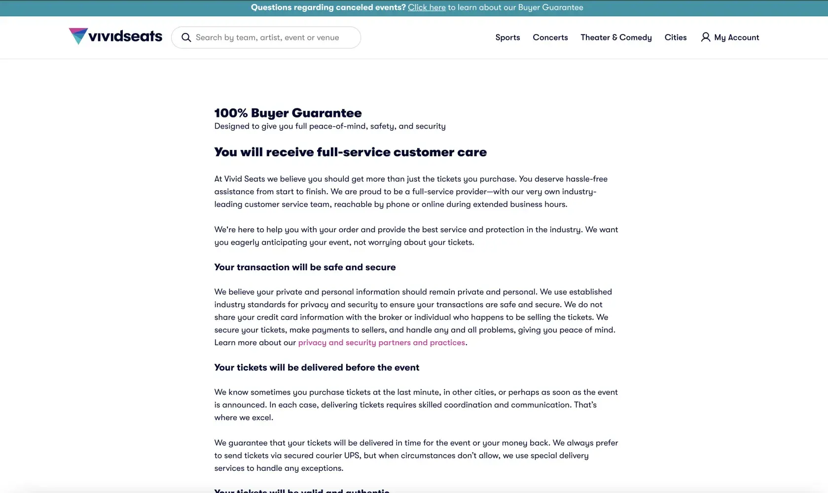 Used VividSeats on 1/4/2020 to purchase Kenny Chesney tix for Arrowhead Stadium show for 7/11/2020. Obviously the tour was canceled for Covid reasons. Show was rescheduled for 5/2021 in Arrowhead.