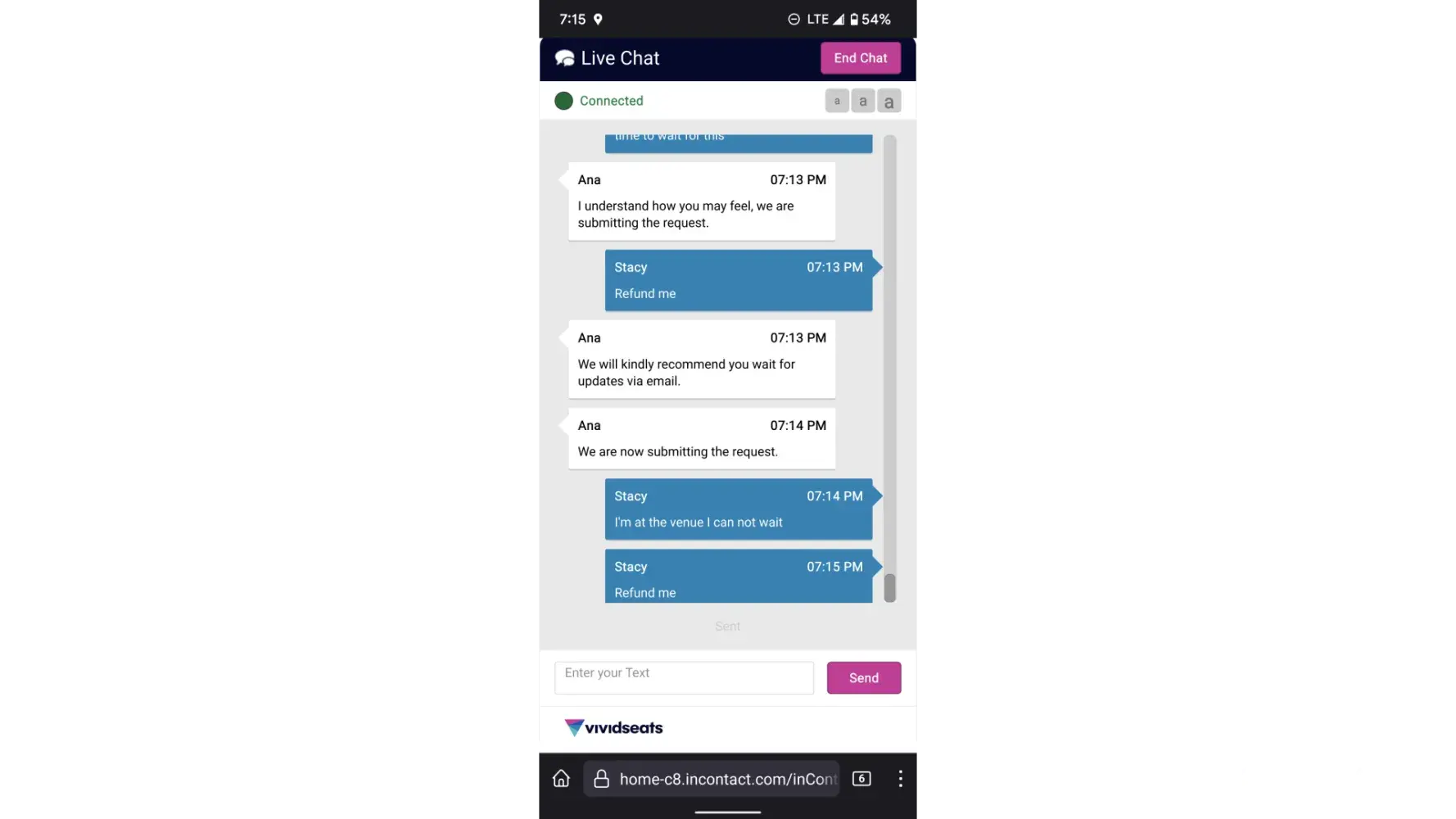 Desired outcome: All of our trips / concerts were refunded except with these people.