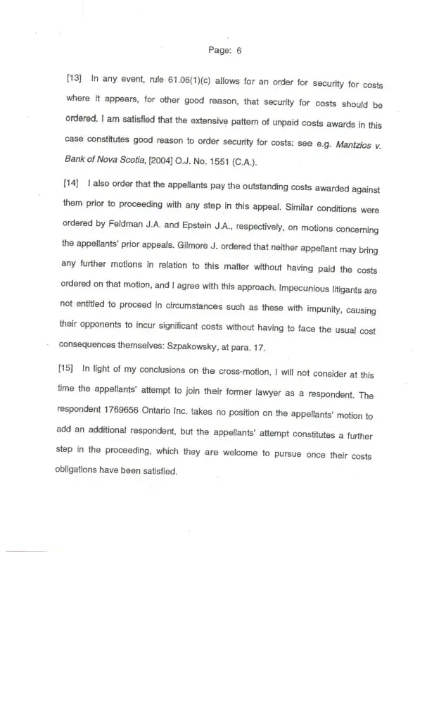 Judgment from Superior Court of Ontario: