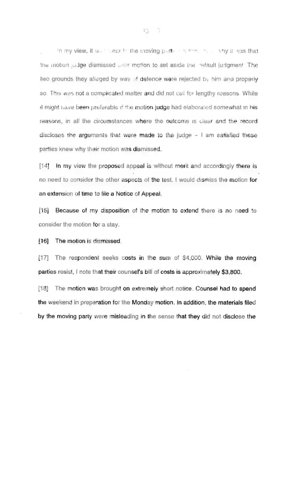 Endorsement from Ontario Court of Appeal: