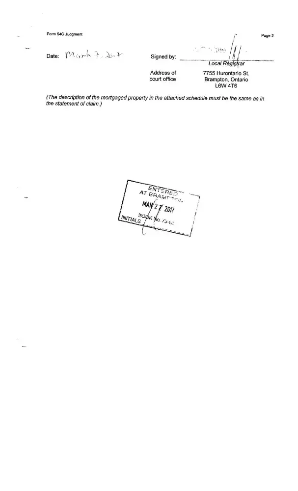 followed the Canadian legal system and obtained a Judgment on March 07/2017.