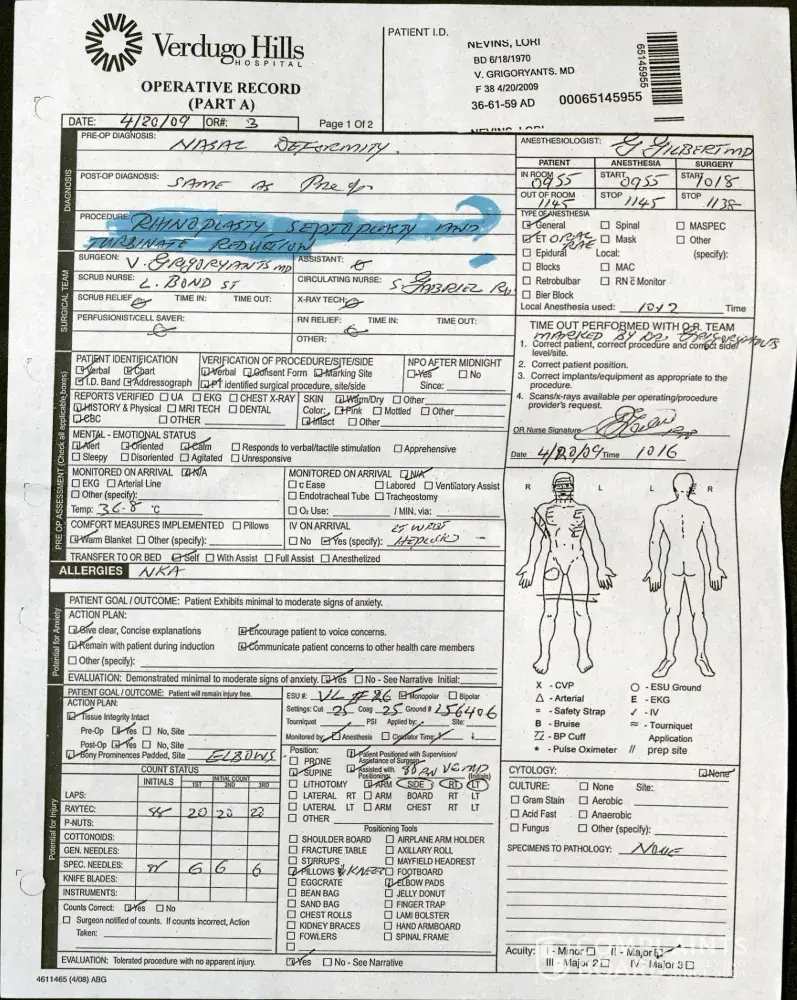 The patient in the first picture had her nose collapsed completely and had to undergo multiple surgeries. Vladimir Grigoryants caused permanent disability on this patient by damaging her nerves. The patient is unable to breathe , suffers from dry nose, lack of mucus production, nerve pain, post nasal drip and had to undergo multiple reconstructive surgeries which failed to correct the damage that Vladimir Grigoryants caused. In addition, Vladimir Grigoryants falsified this patients operative report and violated her HIPPA right.