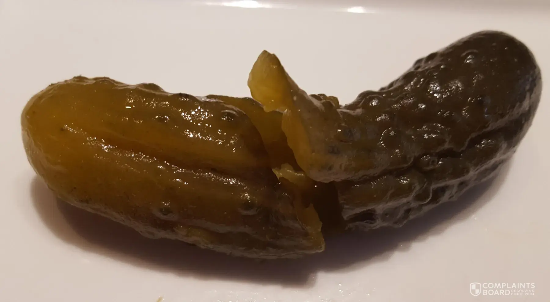 My husband and I love Vlasic Pickles and usually buy the Sweet Baby Whole pickles because we love the small size of the pickle, they are so crunchy, and are just the right sweet/sour combination. When opening the newest jar, I pulled out a pickle and it was way too big for the Sweet Baby Whole pickle jar. It was bent, broken, and a little mushy. (Please see the attached photo). We had been entirely satisfied before this incident, but wanted to bring this to your attention. Please only use baby cucumbers if you are going to call them Sweet Baby Whole.