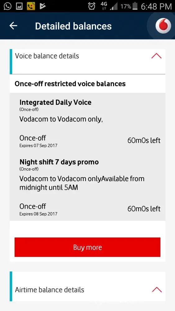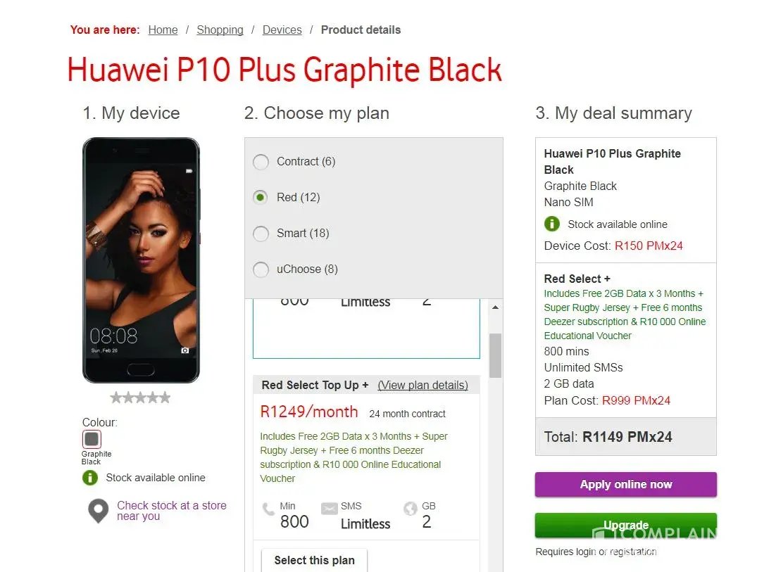 On the 30th July 2017 we contacted Vodacom dialing 111 and informed them we want to upgrade from Smart S to RED MORE DATA (10GB) on 2 of our contracts. This was apparently done.