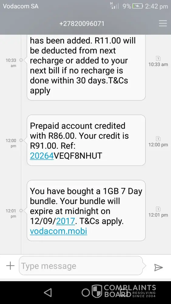 I sent a complaint to the complaints email address and once again... No feedback from Vodacom.