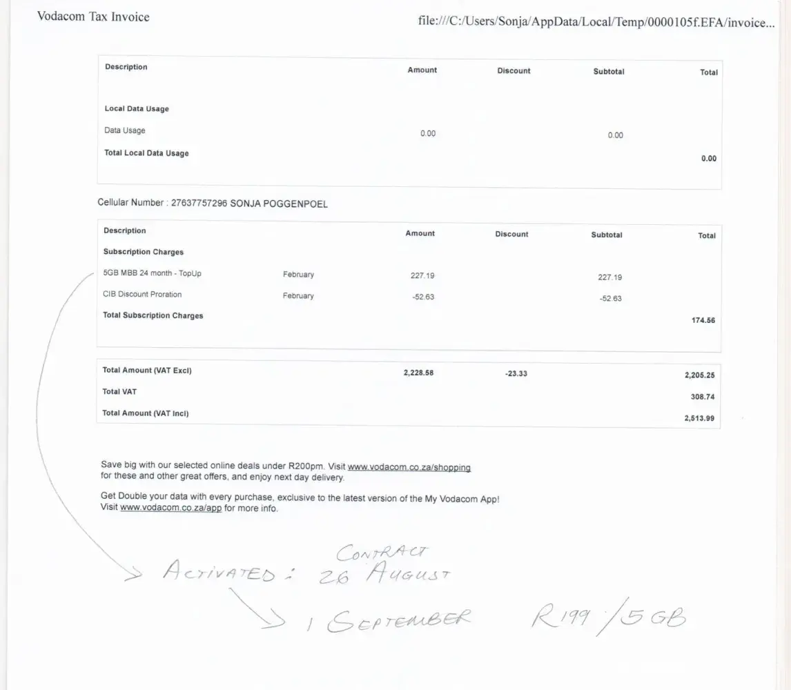 application.I will not let this go until somebody at Vodacom sorts it out.