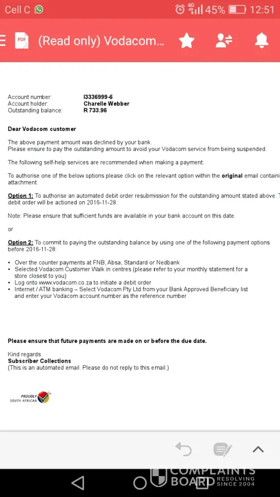 This is my 4th post on Vodacom! No one ever phones me back although there is an automated response that someone will. And no one phones me because no one can tell me what the hell is going on with my account! My number was ported to Cell C more than 6 months ago and I'm still receiving statements and no one can tell me why! Firstly it was over 400 for a while, then 158 and now over 700! My statement this month is 158 and today i receive a notification that i owe over 700! ***? Get a ****ing manager to call me immediately! I will not call at my expense again!