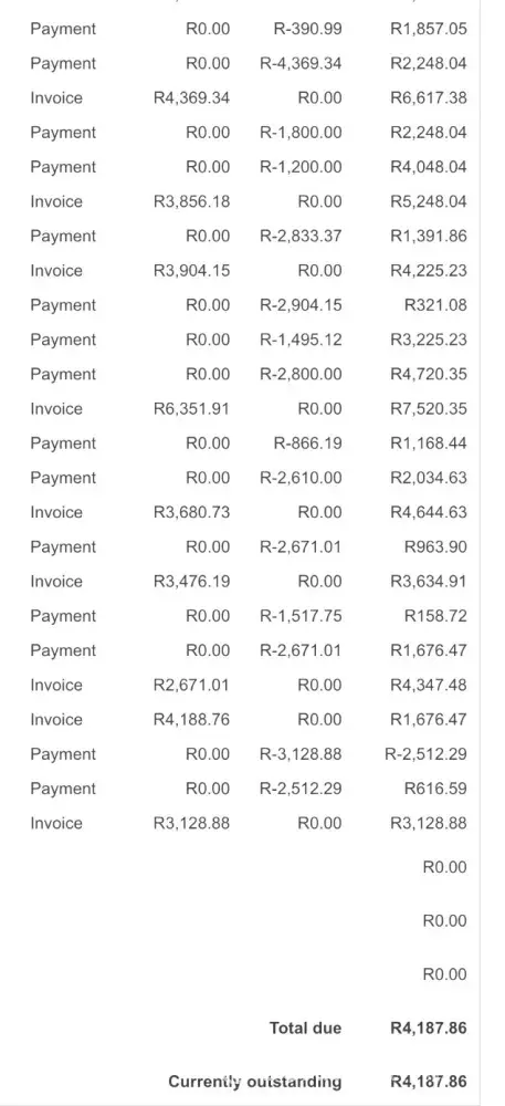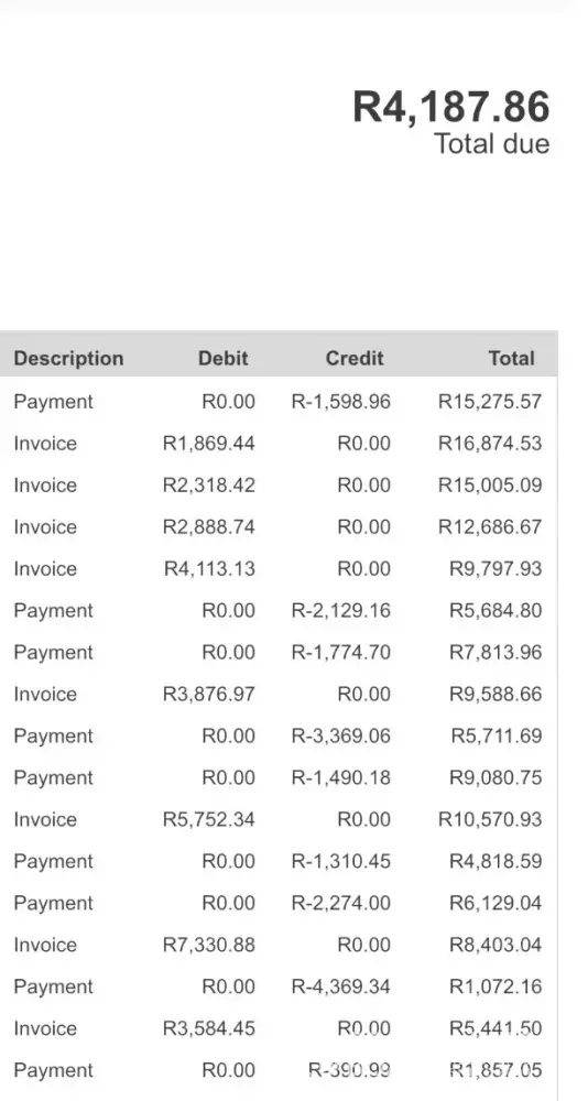 03 june 2016 r1869.44 (two invoices for june 2016 as you can see above totaling r4187.86)