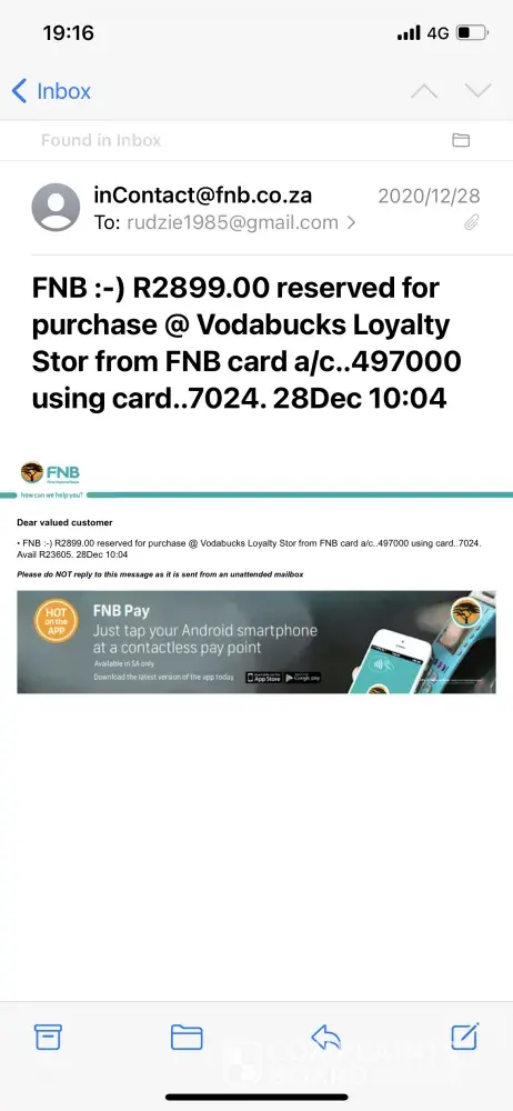 I have attached copies of my bank notification and screenshot of my vodabuck store proof of purchase. this are my only guarantees of the purchases. it have been over a month and the least I should have gotten was assurance or Some kind of communication, but I am the one trying all the revenue to recoup my mother.