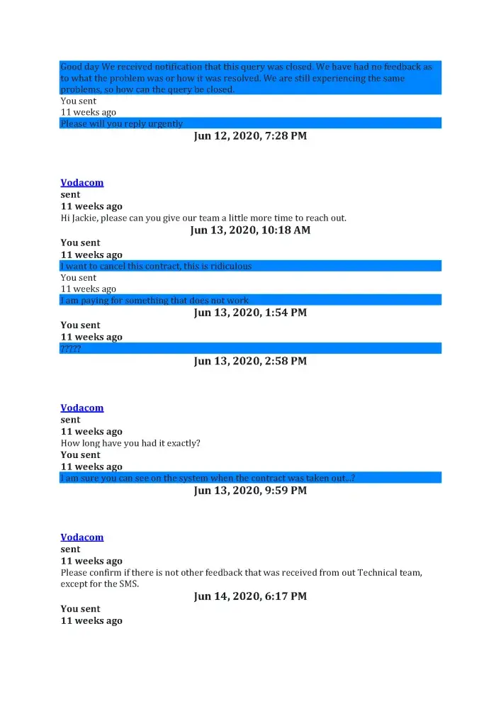I am extremely dissatisfied with Vodacom and requested a refund of all the money paid since February 2018. I also asked to cancel my contract with Vodacom that I have had for a few years.