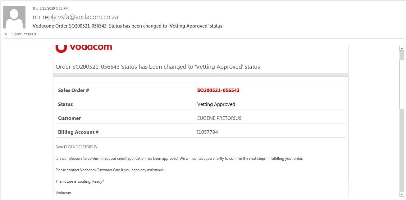 Yesterday 30th May 2020 I visited the same Vodacom Store as I had received NO COMMUNICATION and was informed by the consultant AND Manager that there is no stock available, FULL STOP, no alternatives offered just my plain bad luck!