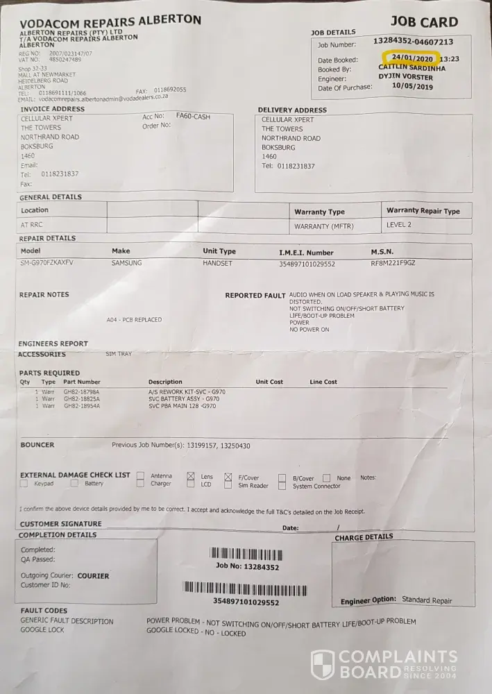 I have been struggling with my phone, since December. It has been in and out of repairs constantly..! It went to Vodacom repairs in Alberton a few times without success.. Then I took it to SSS Cellular in Boksburg, whom also said that they can't fix it and then sent it to you...Â