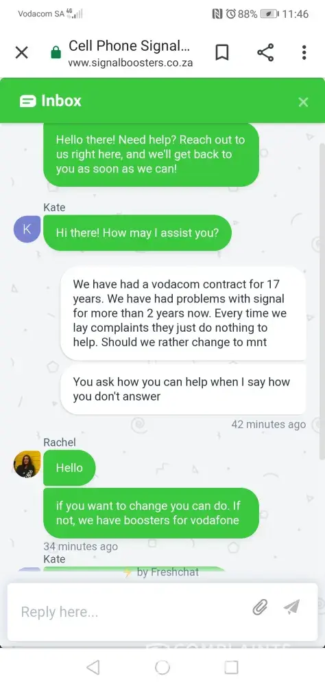 We have been a vodacom customer for 17 years. I have complained so much about our signal. And still all that is said I must buy a signal booster. Why must I pay more. You phone with new offers and new contacts but you can't give me a signal booster. When I said I will have to change to mnt or cell c the helper said I can do it if I want to. What kind of service is that.