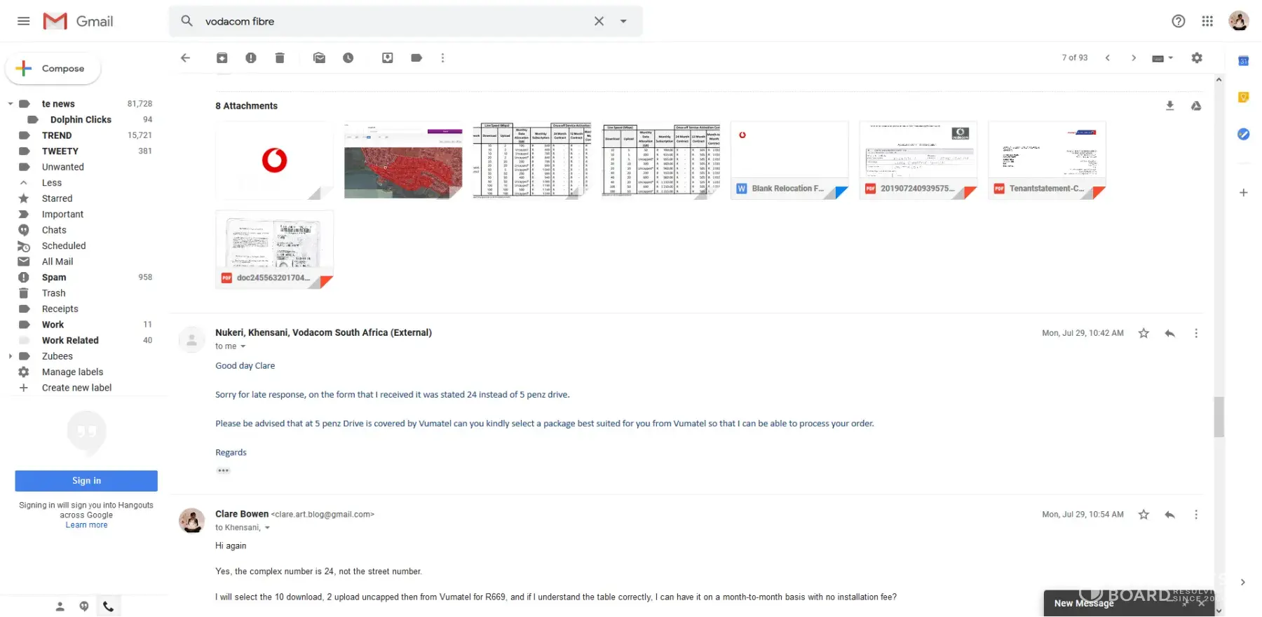 So, I am very unhappy, but this is really gotten to the point ridiculous now, because in spite of many calls to your Vodacom technical department, they have yet to add my phone line to my fibre connection. This is costing me money in terms of the calls I've had to make from my cellphone (which is not Vodacom), but even more so, because I have always, up till this month, used my landline to make my business calls, and now I'm forced to use my cellphone. I've certainly missed many important incoming calls too.