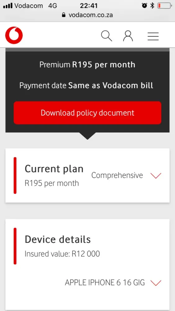 Finally after phoning insurance/Vodacom Hazyview etc 10 times my claim was processed. I was then phoned by someone and told that my options are: 1 a new as good device For R750 or a new device at an access of 20% of the new phone's value. I downloaded my policy as per the attached from the Vodacom Website that shows my phone is insured for R195.00 per month at a value of R12 000. However you have debiting my account with R196.71?