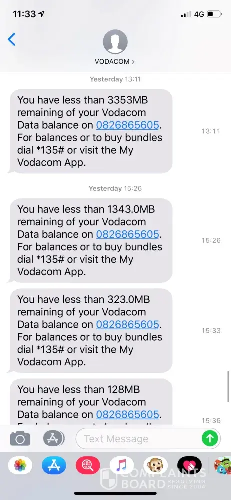 Yesterday 31.07.2019 I got a SMS from VODACOM stating that I have less than 1015.MB remaining.